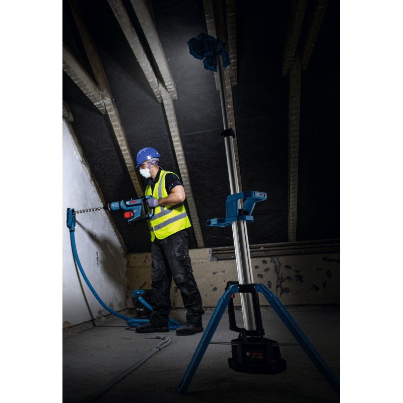- PRO GLT18V-5000 zabezpečuje vynikajúce osvetlenie pracovného priestoru. S tromi úrovňami jasu možno 80 LED nastaviť na výkon až 5000 lumenov. Viacsmerová svetelná hlava umožňuje nastaviť tri moduly tak, aby vrhali svetlo do všetkých smerov, zatiaľ čo ovládanie jedným tlačidlom uľahčuje používanie. Svetlo možno predĺžiť až na 2,2 m pre jednoduchšiu prácu nad hlavou alebo minimalizáciu tieňov a zníženie oslnenia pri svetle smerujúcom dole. Toto osvetlenie možno nastaviť niekoľkými jednoduchými krokmi za menej ako 15 sekúnd a nasvietiť každý tmavý kút. Vežovú svietidlo možno kompaktne zložiť a pri hmotnosti 6,2 kg sa veľmi ľahko prenáša a skladuje. Má krytie IP 54.