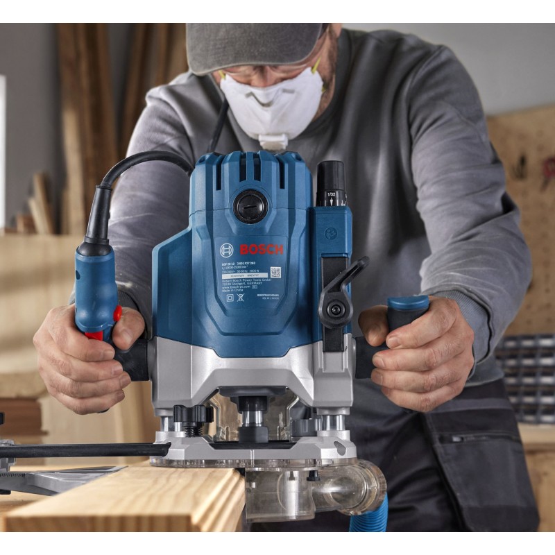 GOF 20-12 poskytuje vďaka motoru s výkonom 2 000 W a elektronike s konštantnými otáčkami hladké a konzistentné frézovanie aj pri náročnom obrábaní tvrdého dreva. Okrem toho celý systém pevne drží na svojom mieste vďaka robustnej konštrukcii náradia, ktorá zaručuje plynulejší chod, a mechanizmu nastavenia hĺbky After-lock, ktorý umožňuje plynulé a presné nastavenie. Ergonomicky naklonené rukoväte s mäkkým úchopom pomáhajú minimalizovať únavu.