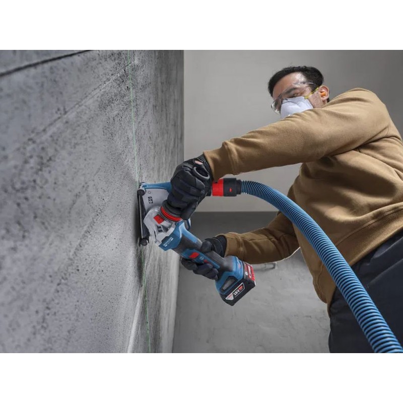 PRO GWS18V-11PS ponúka všestranné funkcie ochrany používateľa vrátane funkcie KickBack Control, inteligentného brzdového systému, ochrany proti opätovnému spusteniu a pákového spínača. Táto vysoko výkonná akumulátorová brúska poskytuje výkon zodpovedajúci sieťovému náradiu s výkonom 1 100 W. Je mimoriadne robustná a zaručuje dlhú životnosť. PRO GWS18V-11PS je ergonomická a ľahko použiteľná vďaka dlhej, štíhlej rukoväti a pohodlnej antivibračnej rukoväti, ktorá znižuje únavu. Má tiež bezkľúčový ochranný kryt a maticu, vďaka čomu je ovládanie jednoduché a pohodlné. Navyše ako prvý získavaš väčšiu flexibilitu vďaka ergonomickej otočnej rukoväti, ktorá uľahčuje rezanie aj brúsenie.