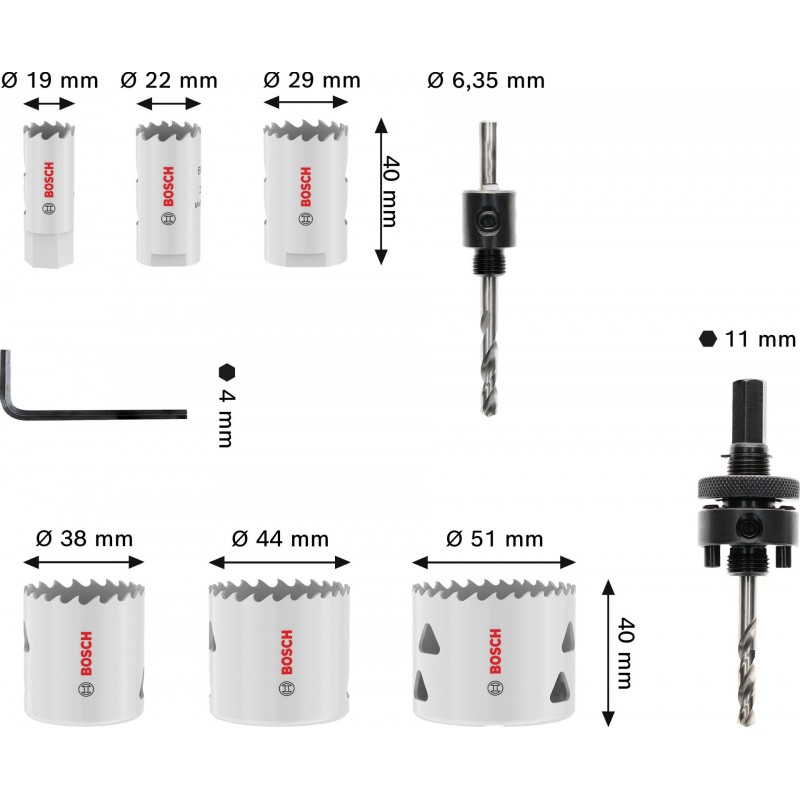BOSCH Multi Material Sada dieroviek so závitom, 19; 22; 29; 38; 44; 51 x 40 mm 2608594611