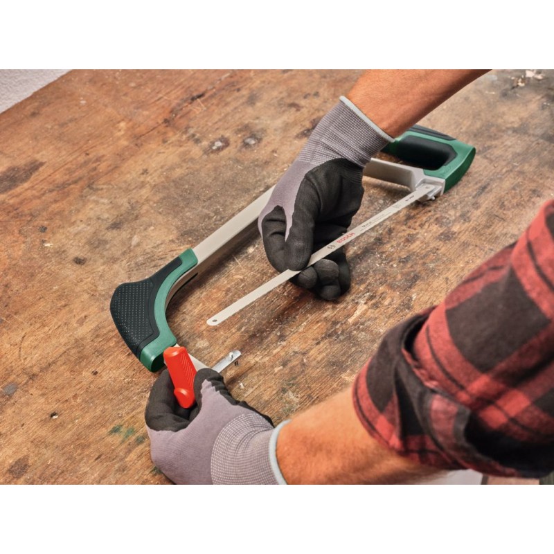 BOSCH Píla na kov 300 mm (1600A02ZA8) je univerzálna rámová píla vhodná na rezanie kovu, plastu aj dreva. Je vybavená odolným bimetalovým listom s dĺžkou 300 mm s jemným delením 24 TPI, ktorý zaisťuje čisté a presné rezy. Tvrdosť rezacích zubov v rozmedzí 62–68 HRC prispieva k dlhej životnosti listu aj pri intenzívnom používaní.