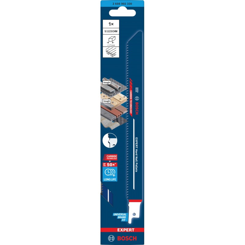 Ponúka až 50× dlhšiu životnosť v tvrdom materiáli než pílový list Bosch S1122HF