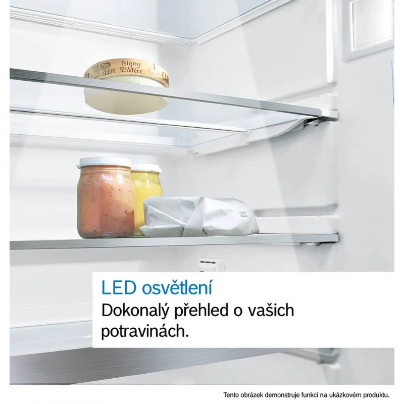 Priestranná vstavaná chladnička s mrazničkou s funkciou VitaFresh XXL <0°>, No Frost a stabilnou teplotou udrží vaše potraviny dlhšie čerstvé. Všetky zmrazené potraviny zostanú bez námrazy a v dokonalom prehľade vďaka druhému osvetleniu mraziaceho priestoru.