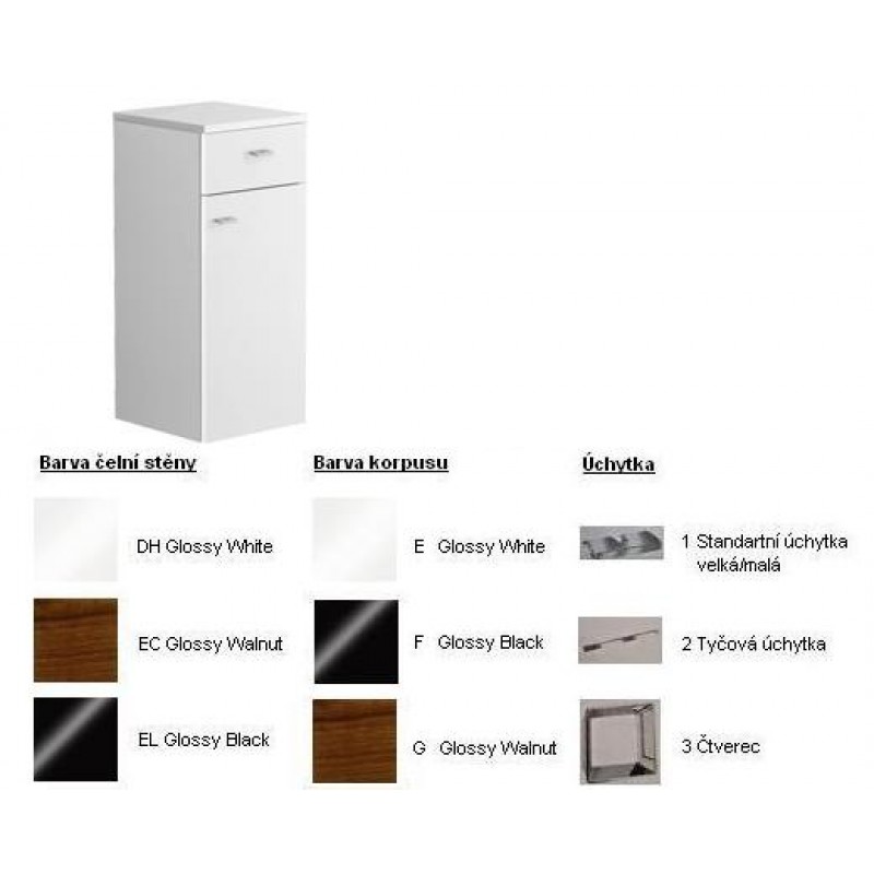 Central Line Fashion Bočná skrinka 350x800x370mm Walnut, úchytka tyčová,čiel. stena White