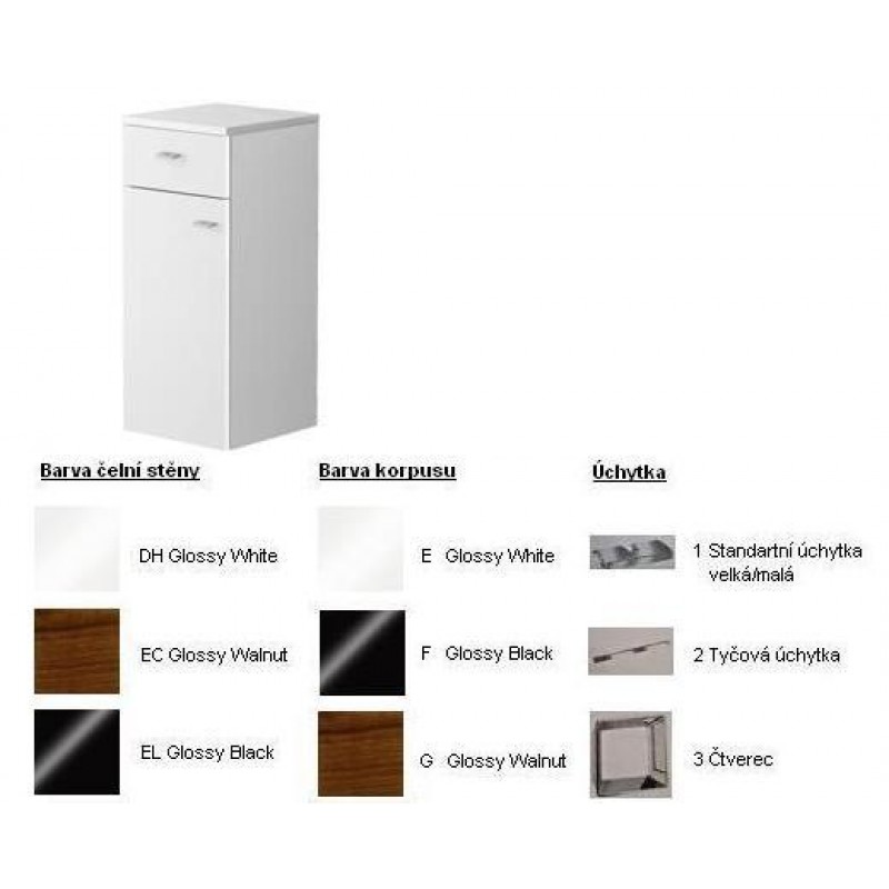 Central Line Fashion Bočná skrinka 350x800x370mm White,úchytka tyčová,čiel. stena Walnut