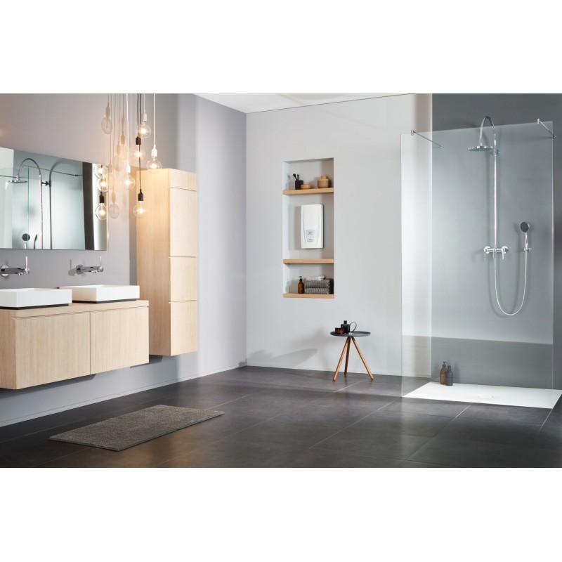 CLAGE DEX Next je plne elektronicky riadený tlakový prietokový ohrievač vody určený na zásobovanie jedného aj viacerých odberných miest (sprcha, vaňa, umývadlo, kuchynský drez). Vodu zohrieva okamžite pri prietoku – bez zásobníka a bez pohotovostných tepelných strát, takže získate stabilnú teplotu, vysoký komfort a úspornú prevádzku.