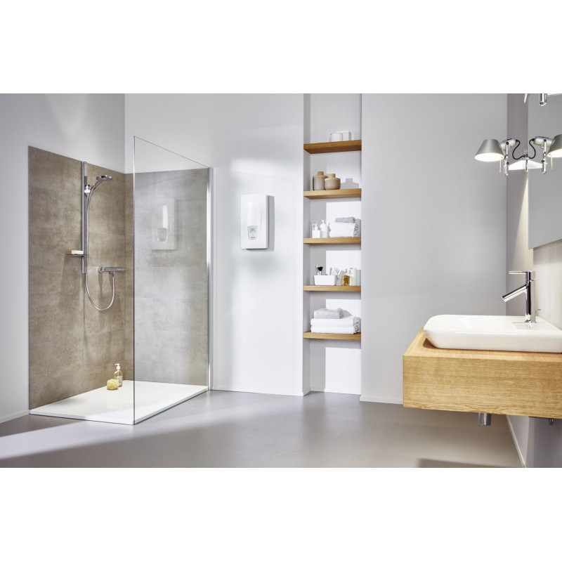 Ovládanie je intuitívne vďaka E-Paper displeju s dotykovými tlačidlami a skleneným krytom. Presná regulácia TWIN TEMPERATURE Control (TTC®) umožňuje nastavenie teploty v rozsahu 20–60 °C a ohrievač spína už pri nízkom prietoku približne 1,5 l/min. Funkcia Multiple Power System (MPS®) umožní pri montáži zvoliť maximálny výkon podľa možností inštalácie 18 / 21 / 24 / 27 kW.