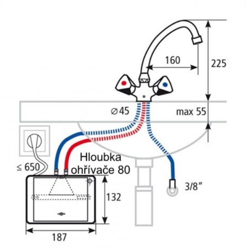 Dosahovaná teplota v rozmedzí 35 ° - 50 ° C. Voda pritekajúca do armatúry je okamžite ohrievaná pri prietoku ohrievačom tak, že nedochádza k stratám tepla v potrubí a zaisťuje, že horúca voda je okamžite k dispozícii. Kvalitné stojanková armatúra určená pre inštaláciu pod stôl zaručuje bezproblémovú montáž na rohový ventil 3 / 8'' pomocou flexibilných prípojných hadíc.vlastnosti: