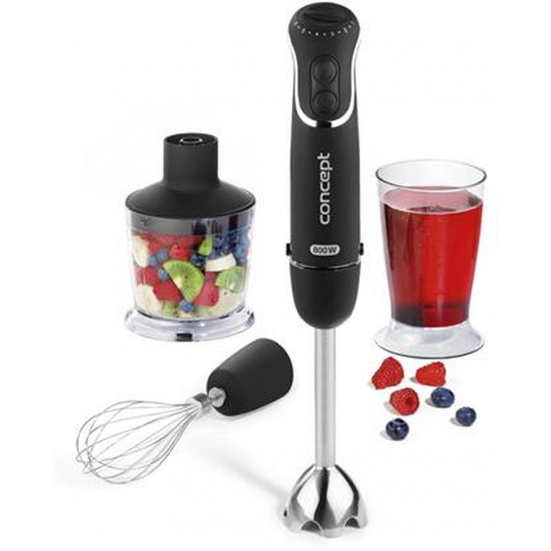 CONCEPT TM-4730 ponorný mixér 800 W s chopperom, šľahacou metlou a mixovací nádobou tm4730Tyčový mixér so silným 800 W motorom s praktickou výbavou v elegantnej čiernej farbe sa "zamatovým" povrchom.
