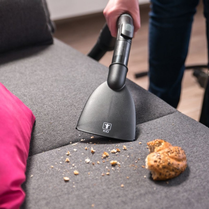 • Každý, kto má deti, to pozná ... všetky omrvinky od jedla po celom byte. S širokou hubicou KID si s tým ľahko poradíte. Vysajete omrvinky pozdĺž kuchynskej linky, na sedačke, na schodoch aj v posteli.