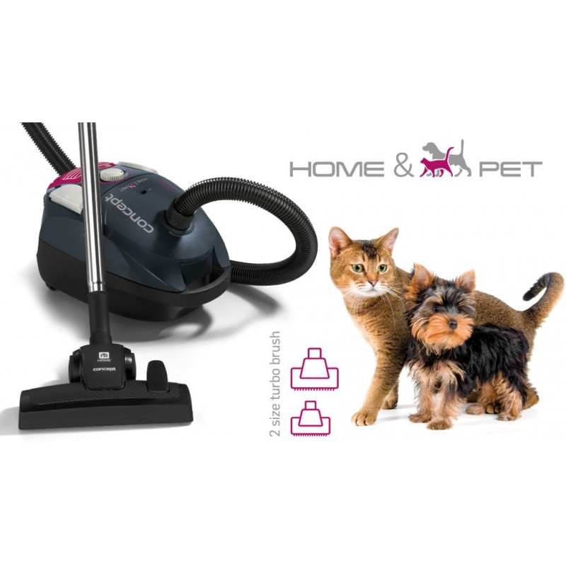CONCEPT VP-8320 Vreckový vysávač s dvoma turbokefa PET vp8320Vysávač s výbavou zameranú nielen na domácich miláčikov PET. Okrem štandardnej podlahovej hubice ponúka aj dva turbokefy a 0,5 m plastové rúrky navyše.