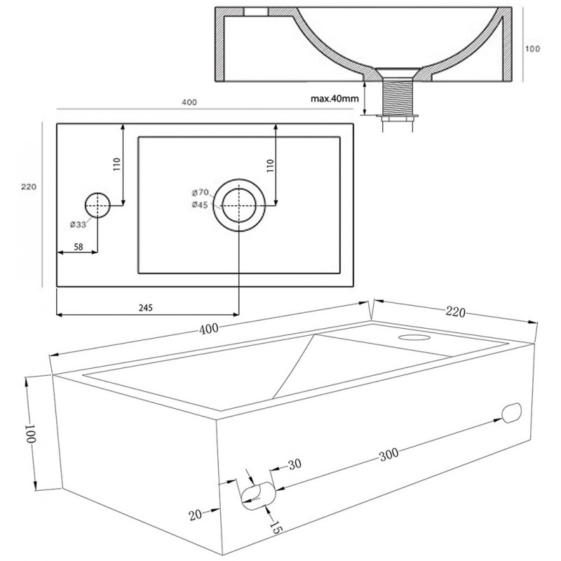 - Pro odeslání do Česka navštivte CREST L Betonové umyvadlo včetně výpusti, 40x22cm, levé, bílý pískovec AR410