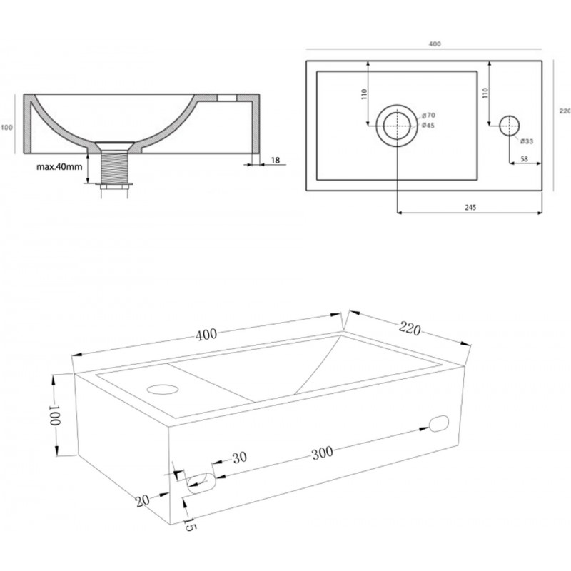 - Pro odeslání do Česka navštivte CREST R Betonové umyvadlo včetně výpusti, 40x22cm, pravé, šedá AR412