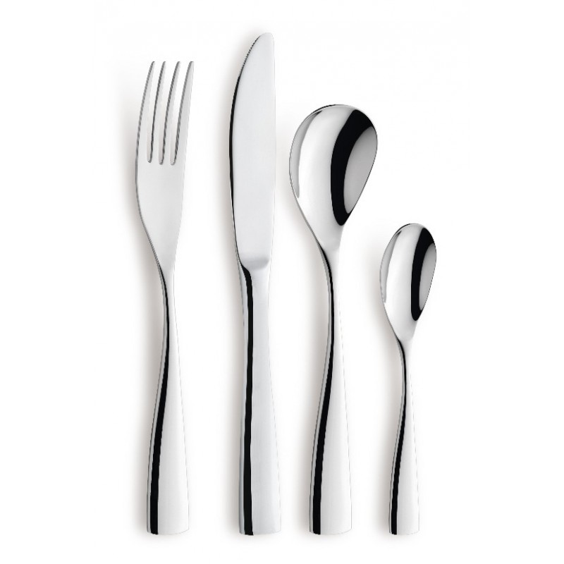 Sada klasických nadčasových príborov až pre 12 osôb je vyrobená z kvalitnej nehrdzavejúcej ocele, ktorý sa skladá z chrómu, niklu i 18/10 (nerez). Povrch je lesklý a minimalistický dizajn príborov sa hodí do každej domácnosti. Príbory možno umývať v umývačke riadu.