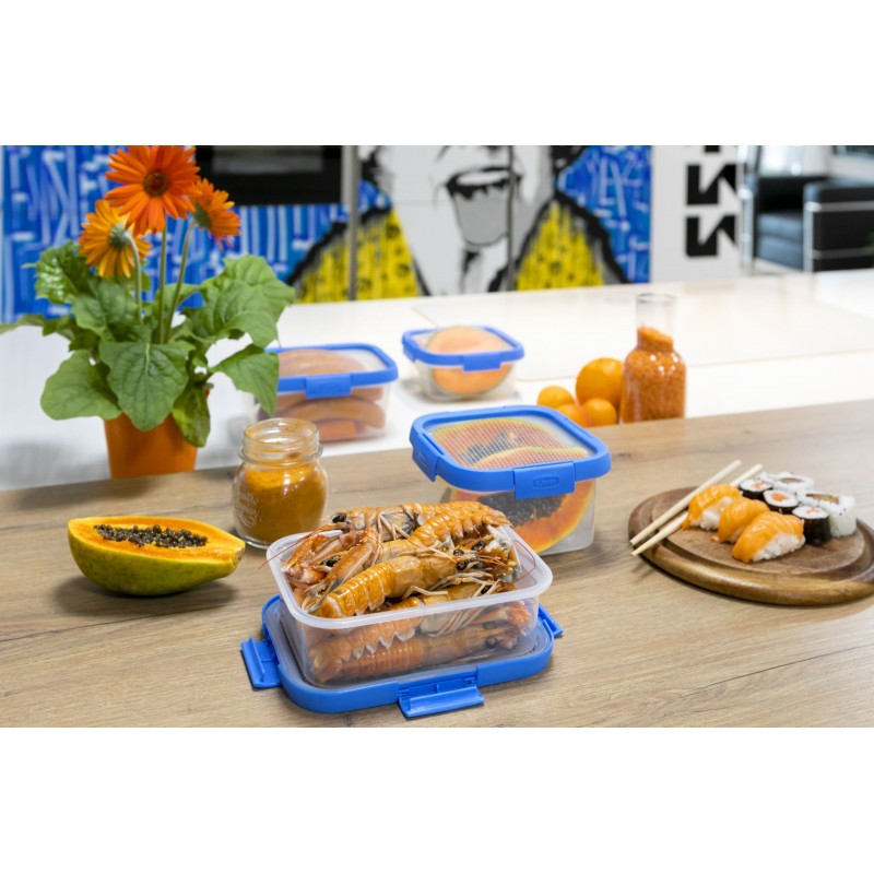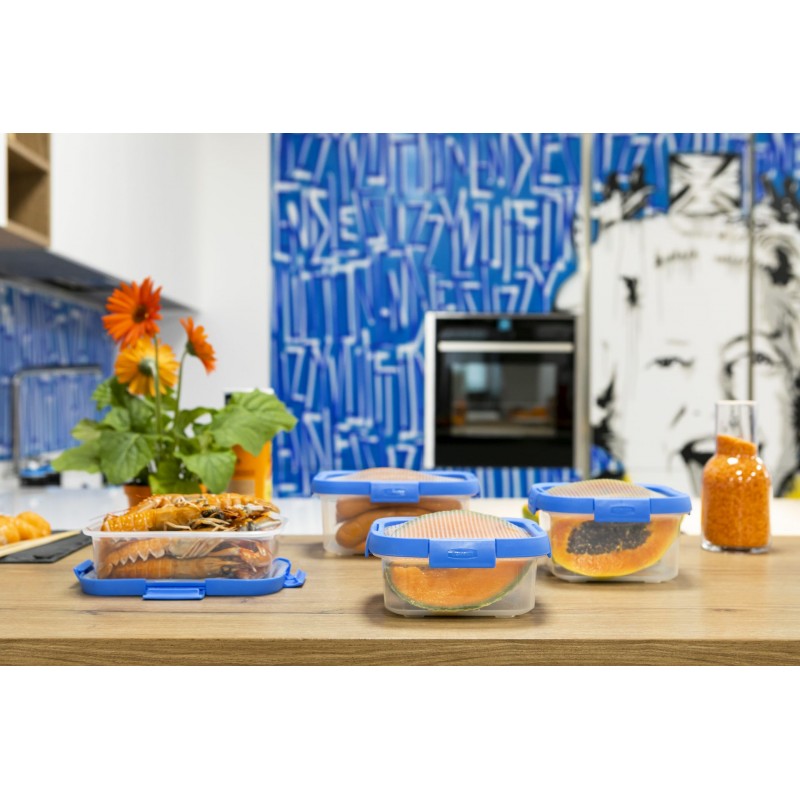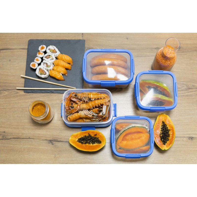 SMART FRESH s flexi vekom je rad viacúčelových dóz na potraviny s novým rozšíriteľným vekom pre extra funkčnosť. Veko je vyrobené z PP (lem a západka), s tesnením z TPE pre vynikajúcu hermetickosť a so silikónovou fóliou pre svoje jedinečné rozťažiteľné vlastnosti. Dózy sú dostupné v 2 formátoch (obdĺžnikový a štvorcový) a niekoľkých veľkostiach.