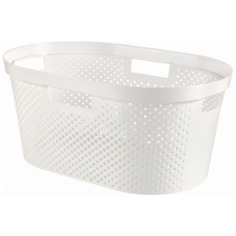 CURVER INFINITY 39L Kôš na čistú bielizeň, recyklovaný plast, biely 04755-040Moderný kôš na bielizeň INFINITY DOTS značky Curver v bielej farbe bude nielen užitočným pomocníkom, ale zároveň štýlovým doplnkom vo vašej kúpeľni. Plastový kôš s objemom 39 l je vybavený úchyty pre ľahkú manipuláciu. Otvory zabezpečujú správnu cirkuláciu vzduchu.