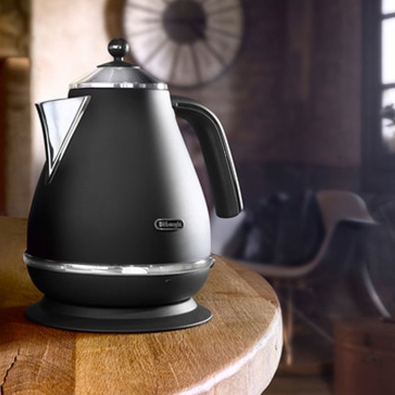 Klasická varná kanvica DELONGHI KBOV 2001.BK Icona Vintage Vás ihneď zaujme lakovaným vonkajším povrchom. Kanvica ponúka vysoký príkon a objem 1,7 l, vrátane odvápňovacieho filtra na tvrdú vodu z vášho vodovodného kohútika.popis produktu