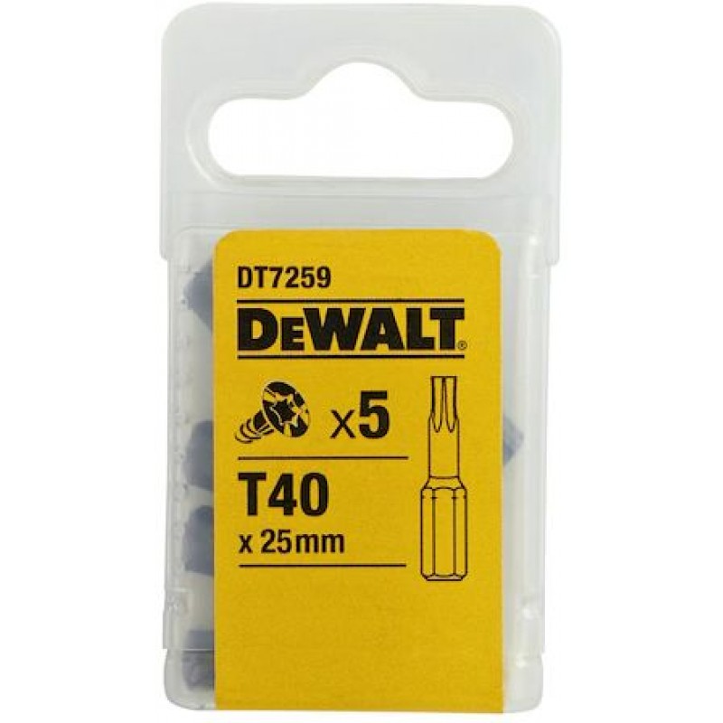 - 5× skrutkovací bit Torx T40, dĺžka 25 mm (DeWALT DT7259)