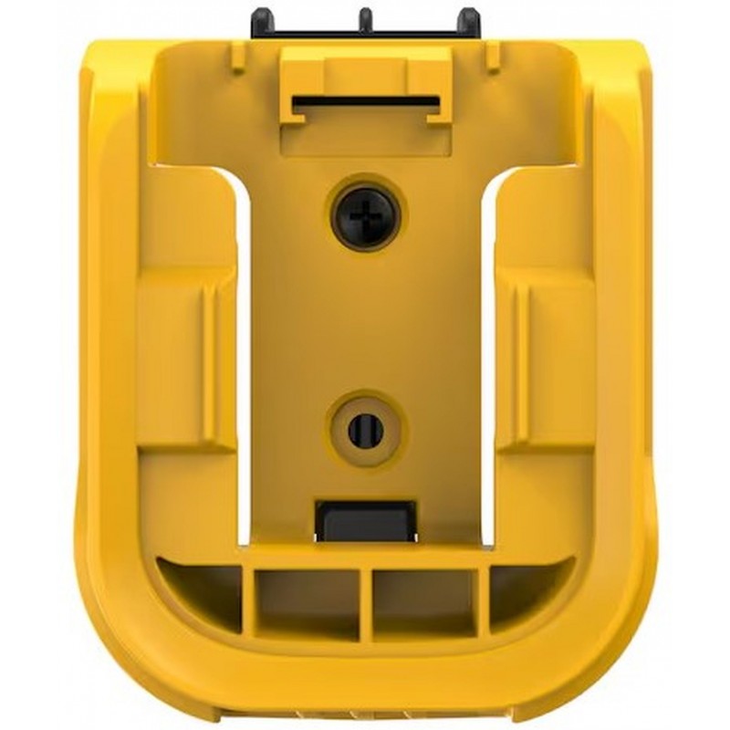 Držiak ponúka viac možností inštalácie – jednoducho ho pripevníte pomocou západiek na kovovú lištu DeWALT alebo ho môžete prišróbovať priamo na stenu v dielni či vo vnútri servisného vozidla (montážny materiál nie je súčasťou balenia).