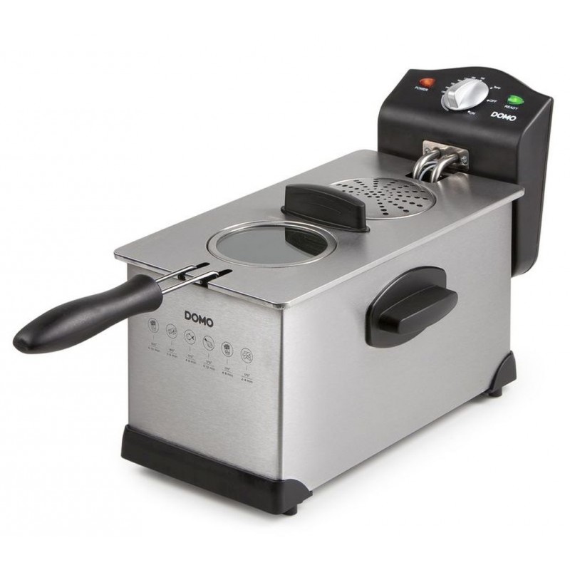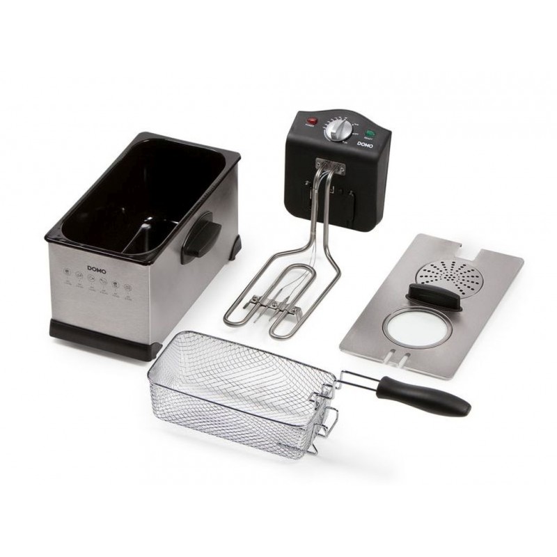 DOMO Fritéza nerezová 3 l DO462FRPlne rozoberateľná nerezová fritéza so smaltovanou nádobou s objemom 3 litre. Nádobu zakrýva nerezové veko s pachovým filtrom a skleneným priehľadom.