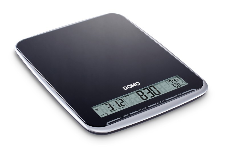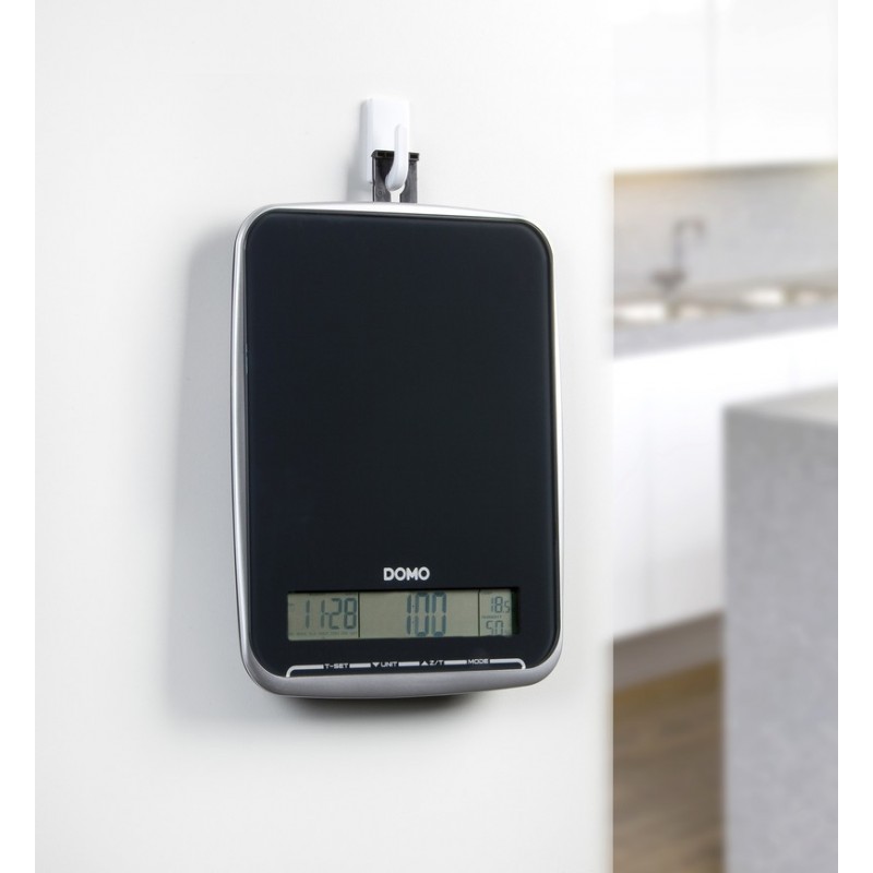 DOMO Kuchynská váha do 10 kg - čierna, sklenená DO9105WKuchynská sklenená váha s presnosťou na 1g , vážiaca až do 10 kg. S viac funkciami ako je časovka, hodiny, dátum, teplota, vlhkomer ..