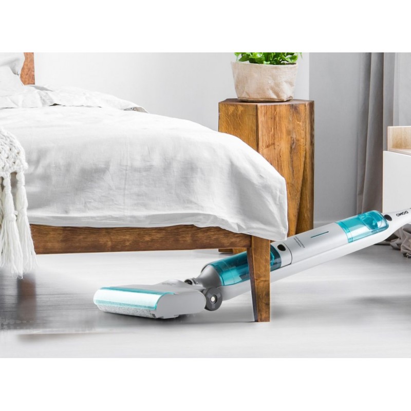 Tento bezdrôtový podlahový čistič 2v1 je vybavený výkonnou Li-Ion batériou 21,9 V (2600 mAh) a silným motorom so sacím výkonom až 10 kPa, čo zaisťuje hĺbkové čistenie všetkých tvrdých podláh, vrátane parkiet alebo laminátu.