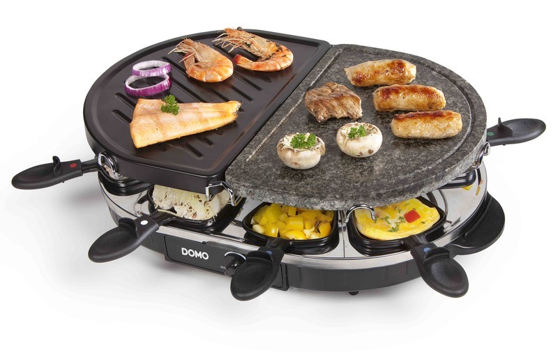 DOMO Raclette gril z prírodného kameňa / kov DO9059GRaclette gril z prírodného kameňa v kombinácii s kovovou grilovacou plochou určený až pre 8 osôb.