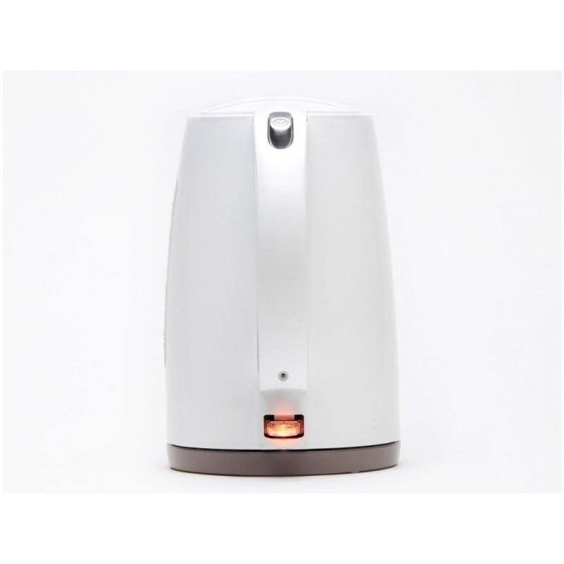 - Hnedý podstavec dopĺňa ľahko krémovú farbu kanvice