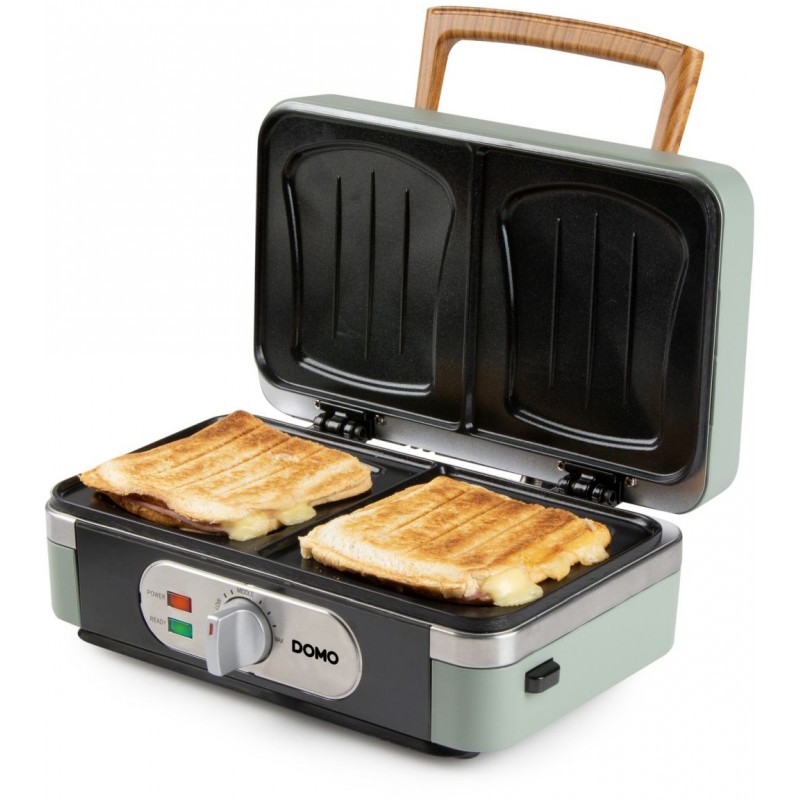 DOMO DO9276C je ideálnou voľbou pre všetkých, ktorí hľadajú všestranný kuchynský spotrebič na rýchlu a jednoduchú prípravu rôznych pokrmov – od chrumkavých sendvičov cez vafle až po grilované špeciality.