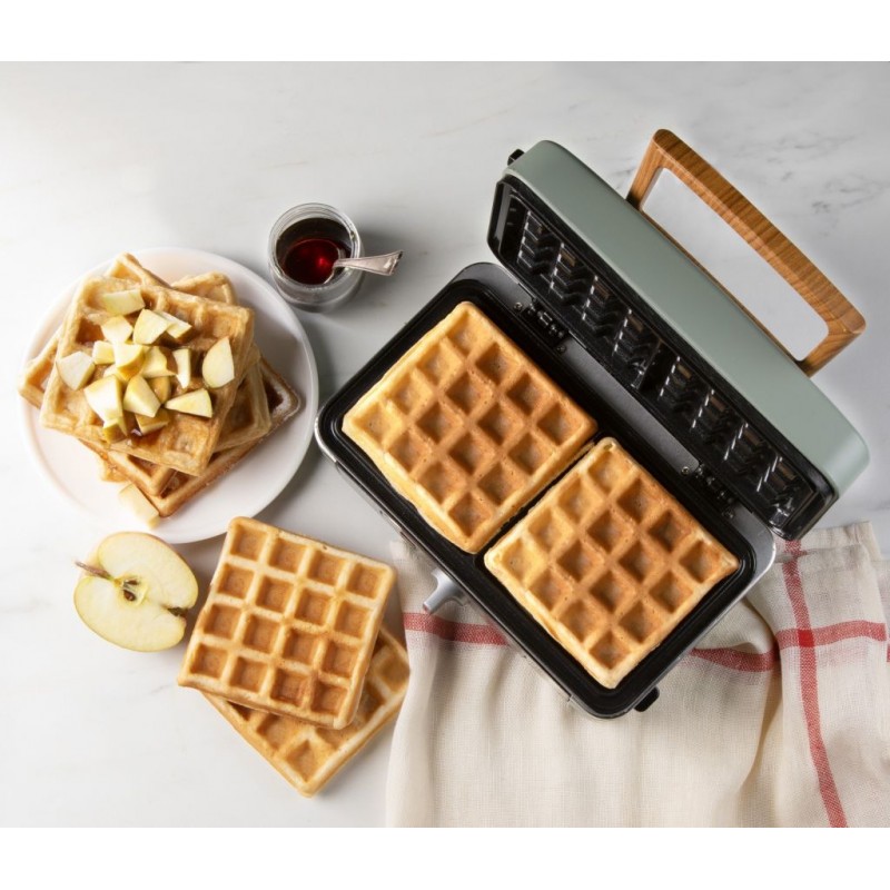 Štýlové vyhotovenie v matnej zelenej farbe s detailmi v drevenom dekore skvele zapadne do modernej kuchyne. Praktické prvky ako kontrolky prevádzky, protišmykové nožičky alebo priestor na kábel zvyšujú komfort pri každodennom používaní.