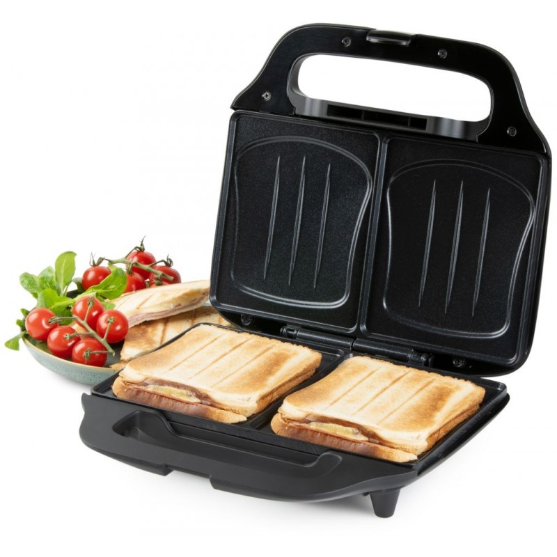 Výkonný príkon 900 W zabezpečuje rýchle nahriatie a rovnomerné opečenie. Nepriľnavý povrch uľahčuje prípravu aj následné čistenie bez pripaľovania sendvičov.