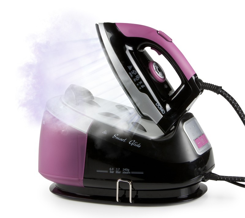 Systémová žehlička s parným generátorom - DOMO DO7086SParný generátor o sile 6 bar pre stály a silný prúd pary a vysoký parný ráz. Vyberateľná nádržka na vodu a hladká keramická žehliaca plocha Smart Glide pre ľahké žehlenie.