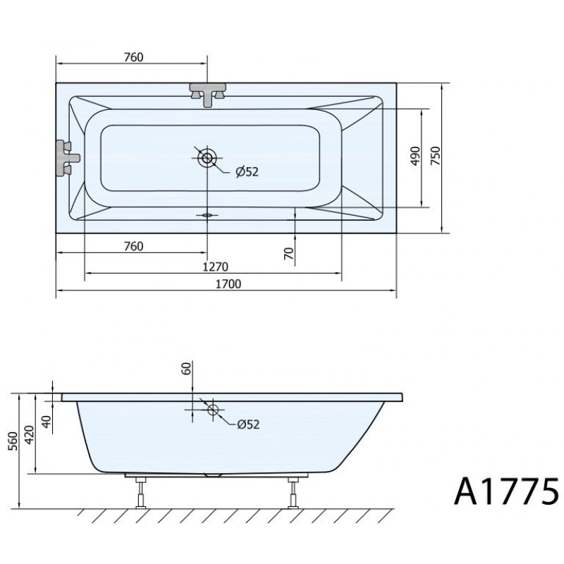 NISA obdĺžniková vaňa 170x75x42cm bez nôh, bielaTechnické údaje