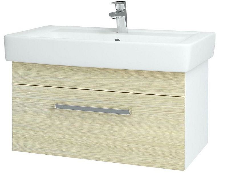 DŘEVOJAS Q UNO 800 skrinka s umývadlom Q 800, biela/dub, úchytka mat 20104A