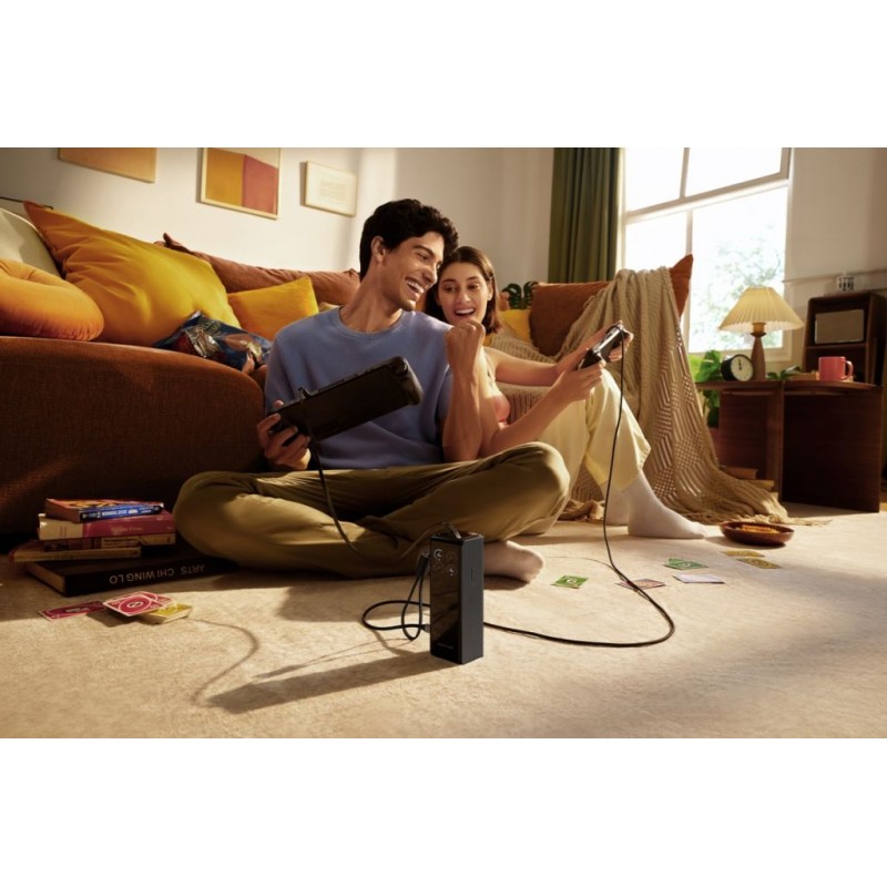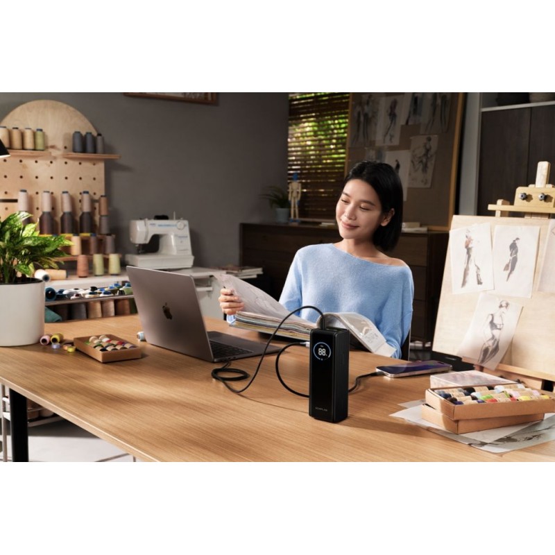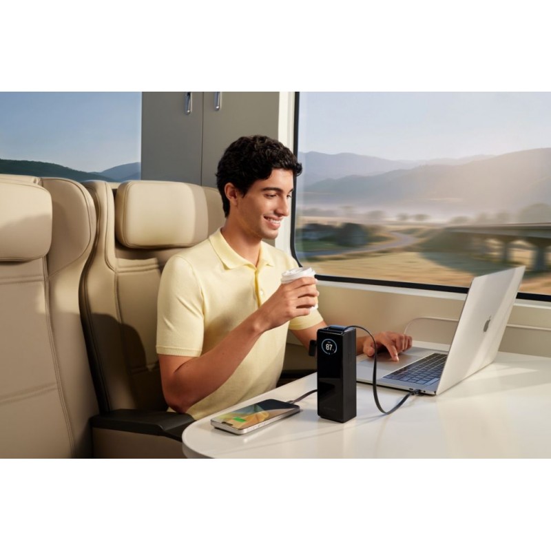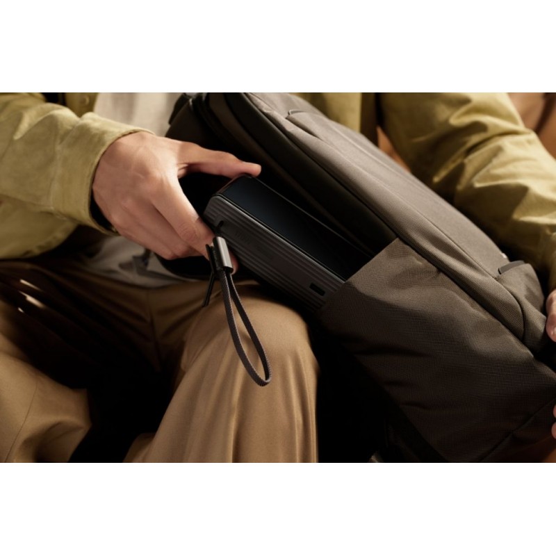 Žiadne stratené káble – dva integrované 100 W USB-C káble s navíjacím mechanizmom a pútkom sú vždy poruke, elegantne uložené v dizajne powerbanky. Navíjací mechanizmus vám umožní prístup k napájaniu v priebehu niekoľkých sekúnd.