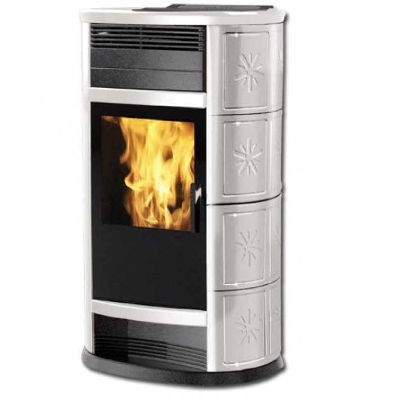 EDILKAMIN ANDE teplovodné kachle na pelety , 18kW , biela 755540Prevedenie : boky , top a vložky biela smotanová keramika