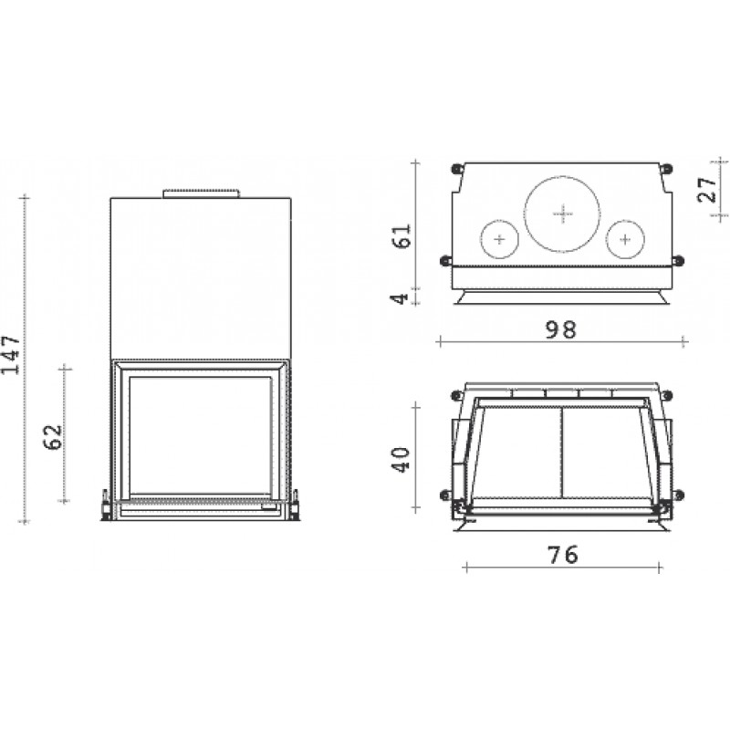 EDILKAMIN CRISTAL 76 N krbová vložka na drevo, bez ventilátora 619890Krbová vložka na drevo Cristal 76 je určená na vykurovanie objektu pomocou teplého vzduchu ohrievaného medzi plášťom ohniska a druhým plášťom vložky. Výkon vložky je max 12 kw, odovzdaného prostredníctvom sálania cez sklo ohniska a tepelným prúdením vzduchu medzi plášťami vložky. U tejto vložky je možné časť horúceho vzduchu odviesť do susednej miestnosti. Voliteľné príslušenstvo - teplovzdušný ventilátor pre odvod horúceho vzduchu do ďalších miestností.