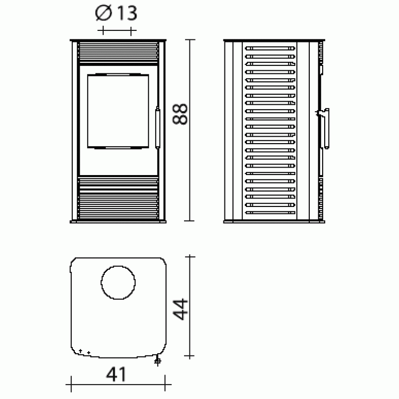 EDILKAMIN FUNKY teplovzdušná krbové kachle na drevo antracitová 641660Krbové kachle Funky sú určené k lokálnemu vykurovanie objektu prostredníctvom prúdenia teplého vzduchu. Výkon krbových kachlí je max 8 kw, odovzdaného do priestoru prostredníctvom tepelného prúdenia vzduchu medzi plášťami a sálania cez sklo ohniska. Plášť je z ocele vo farbe antracit alebo keramiky vo farbe bordo a béžová.