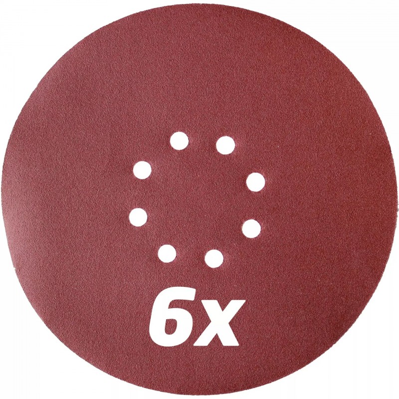 - Vrátane 6 brúsnych kotúčov O 225 mm (2×P60 / 2×P80 / 2×P120)