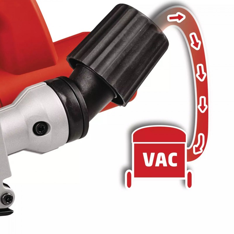 O jasný výhľad počas práce sa stará odsávanie prachu. Po pripojení externého vysávača je možné pracovať s podstatne menšou prašnosťou.