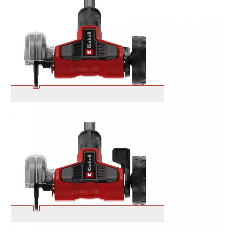Vodiace koliesko aku kefy na škáry možno nastaviť na ľubovoľnú hĺbku škáry bez použitia náradia. Vďaka tomu zostáva zariadenie vždy paralelne k škárovacej kefe a umožňuje presnú prácu v rovnakej výške ako koliesko, pre optimálne výsledky čistenia.