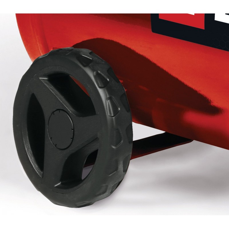 Snadná a rychlá přeprava kompresoru díky praktickému přepravnímu madlu a dvěma pogumovaným odolným kolečkům.
