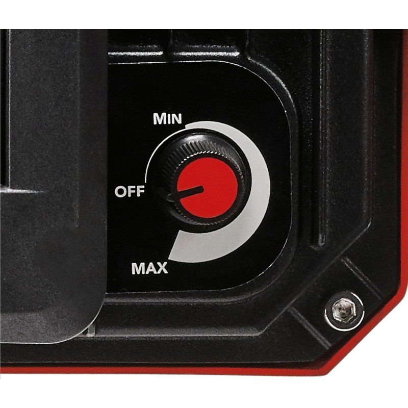 Na plynulé nastavenie jasu slúži otočný stmievač a 360° otočná hlava lampy poskytuje vysokú mieru flexibility. Praktická rukoväť umožňuje jednoduchú prepravu a skladací stojan šetrí miesto pri uskladnení. Na univerzálne použitie je k dispozícii robustný upevňovací hák.