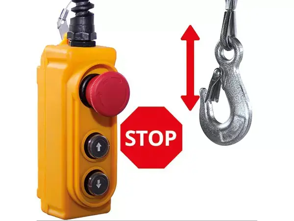 Pre väčšiu bezpečnosť pri práci je k dispozícii ovládací spínač s funkciou núdzového zastavenia a bezpečnostná poistka na záťažovom háku. Automatická brzda navyše zaisťuje náklad v každej polohe. Lanový navijak je tiež vybavený automatickým koncovým spínačom, ktorý zároveň zabraňuje prehriatiu motora.