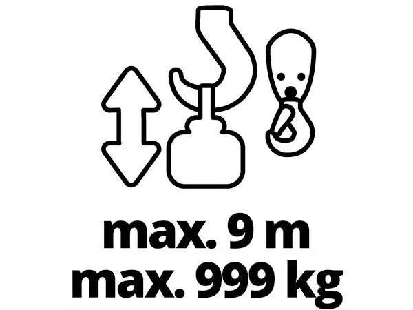 Maximálna nosnosť s kladkou je 999 kg, bez kladky 500 kg