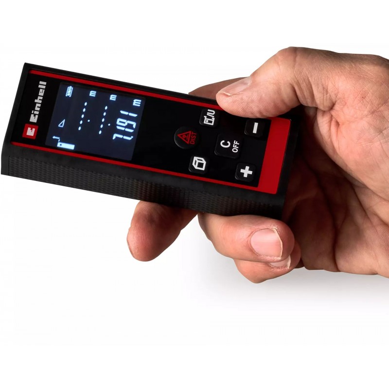 Laserový diaľkomer Einhell TC-LD 60 R ponúka možnosť flexibilne zvoliť požadovanú meraciu rovinu (prednú alebo spodnú časť prístroja). S meracím rozsahom 0,05 až 60 m, laserom triedy II, vlnovou dĺžkou 635 nm a presnosťou +/- 2 mm poskytuje presné výsledky pri meraní vzdialeností, plôch aj objemu. Jednotky je možné prepínať medzi metrami, stopami a palcami.
