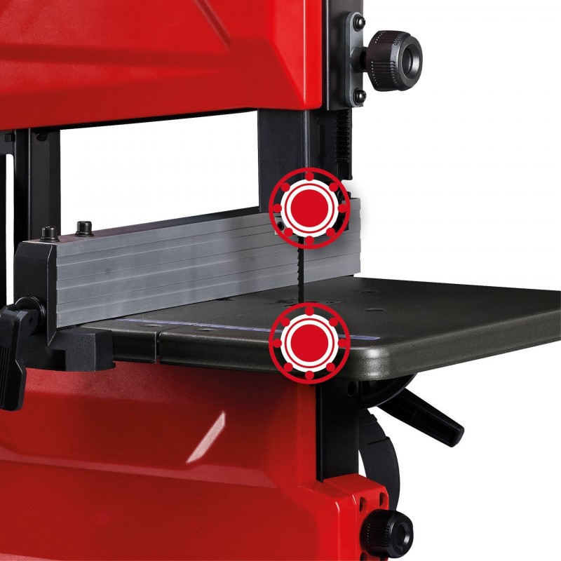 Einhell TC-SB 200/1 je ideální základní stroj pro hobby DIY nadšence. Stacionární a přitom flexibilní pásová pila zaujme svou přizpůsobivostí požadavkům. Přímé řezy nebo oblouky, zkosené nebo příčné k vláknu: Pásová pila nabízí široký rozsah. Dřevo nebo dřevu podobné materiály lze řezat velmi přesně pomocí výkonného motoru o příkonu 250 W. Výhodou pásové pily je také úzký prořez, který chrání materiál a šetří energii. Za tímto účelem poskytuje TC-SB 200/1 účinnou bezpečnost při profesionálním ovládání. Nastavení výšky se používá nejen pro Přesné řezy. Pokud je výškové nastavení přizpůsobeno ideální pracovní výšce uživatele, slouží také k bezpečnému a pohodlnému používání. Vícenásobně nastavitelný stabilizátor pilového kotouče snižuje vibrace pilového kotouče, čímž podporuje jeho spolehlivé používání a navíc zajišťuje jemnější řez. Ochranný kryt pilového kotouče je rovněž výškově nastavitelný, a tím přizpůsobitelný tloušťce řezaného materiálu. Pro bezpečnou práci na pásové pile je nezbytná přítlačná tyč, která je součástí dodávky. Pilový stůl je plynule naklápěcí, takže lze provádět i složité pokosové řezy. Pravítko a ložiskové válečkové vedení pomáhají domácím kutilům s rovnými a přesnými řezy.