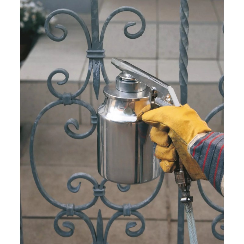 Tryskacia pištoľ s tvrdenou tryskou je ideálnym pomocníkom na odstraňovanie hrdze a farby, zvyškov v rohoch alebo na iných plochách pri pracovnom tlaku do 8 bar. Tryskacia pištoľ je vyrobená z hliníka. Tvrdené trysky z kalenej ocele odolávajú neustálemu vysokému namáhaniu. Vďaka bajonetovému uzáveru sa tryska uvoľní len otočením zápästia. Plynulá spúšť slúži na presné dávkovanie tryskacieho materiálu.