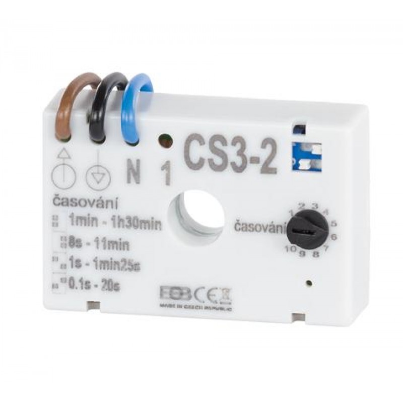 Časový spínač pod vypínač CS3-2 slúži k automatickému ovládaniu osvetlenia pre schodisko (bez blokovania).