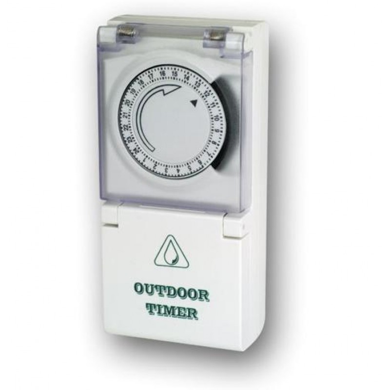 Ak potrebujeme zapnúť a vypnúť spotrebič v určitom časovom rozmedzí. Výhodou tohto typu je ochrana proti striekajúcej vode, čo umožňuje zásuvku použiť aj mimo objekty napr. pre spínanie vonkajšieho osvetlenia. Slúži pre časové spínanie domácich spotrebičov (0-3500 W).